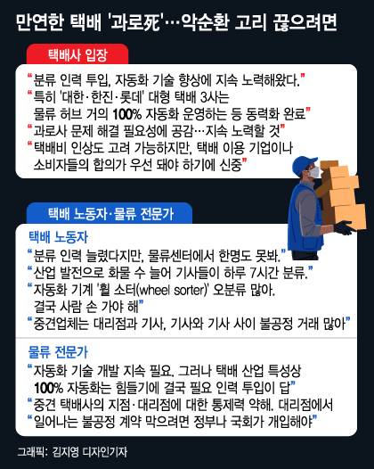 ◇택배업체 "인력, 기술에 지속 투자해왔다", 현장 "오히려 업무 강도 세졌다"
