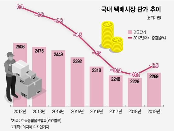 ◇10년 사이 물량 두 배, 택배단가는 -9.5%...올해 코로나로 물량 급증