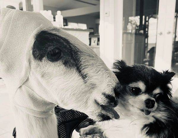 매켄지의 무조건적인 애정은 종마저 초월했습니다. 고양이, 새, 다람쥐, 칠면조에게도 먼저 다가가 관심을 보이더니, 자신보다 몸집이 10배 이상 큰 새끼 염소까지 돌보기 시작한 겁니다. 보호소 직원들은 "자신과 같은 아픔을 겪는 동물들에 대신 어미가 되어주려는 것"이라며 감격했습니다.