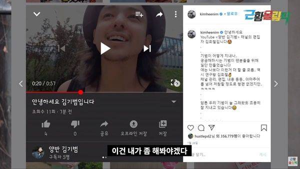 끝으로 김기범은 최근 개설한 자신의 유튜브 채널에 대해 "김희철 덕분에 유튜브를 시작하게 됐다. 유튜브라는 채널을 통해 '어렸을 때 나를 좋아해 줬던 분들을 찾을 수 있지 않을까'하는 기대감에 시작하게 됐다"고 전했는데요, 이어 "저는 잘 먹고 잘살고 있습니다. 코로나19로 힘든 시기 꼭 이겨내시고 행복하세요"라는 인사를 남겼습니다.