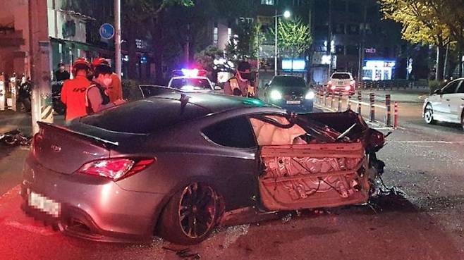 어젯(26일)밤 11시 10분쯤, 부산 동래구 명장동 한 도로에서 20대 남성 A씨가 몰던 승용차 한 대가 전봇대를 들이받았습니다.