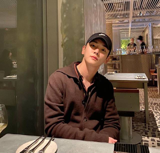 사진에는 레스토랑에서 식사를 기다리며 여유를 즐기고 있는 키의 모습이 담겼다.