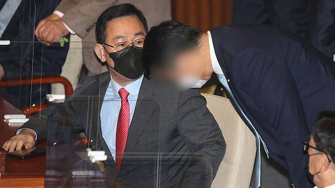 국민의힘 주호영 원내대표가 본회의장에 입장하는 과정에서 청와대 경호팀이 주 원내대표의 신원을 물어보는 등 수색했다는 이유에서입니다.