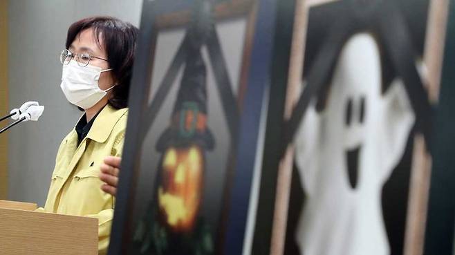 서울시는 브리핑을 열면서 '핼러윈데이 즐기려다 진짜 유령이 될 수 있습니다', '나는 네가 10월 31일에 할 일을 알고 있다' 등 문구를 적은 포스터를 제작해 박 통제관 양옆에 세웠습니다.