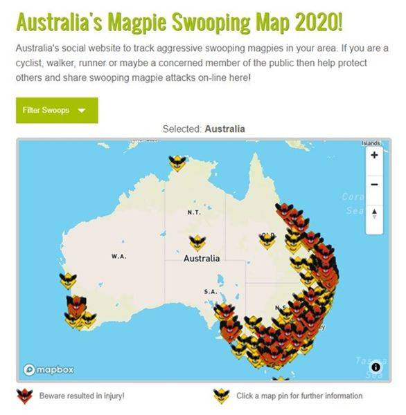(사진='9NewsMelb' 트위터, '9 News North Queensland' 페이스북, 'Magpie Alert' 홈페이지 캡처)