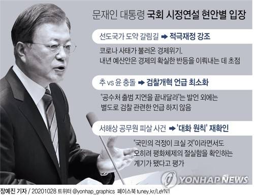 [그래픽] 문재인 대통령 국회 시정연설 현안별 입장
