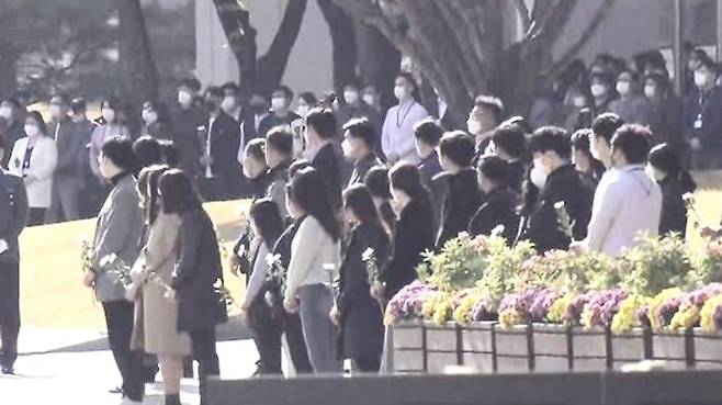 화성 사업장에는 이 회장의 발자취를 영원히 기억하겠다는 현수막이 걸렸고 임직원들은 3천여 송이의 국화를 들고 이 회장의 마지막 출근을 지켜봤습니다.