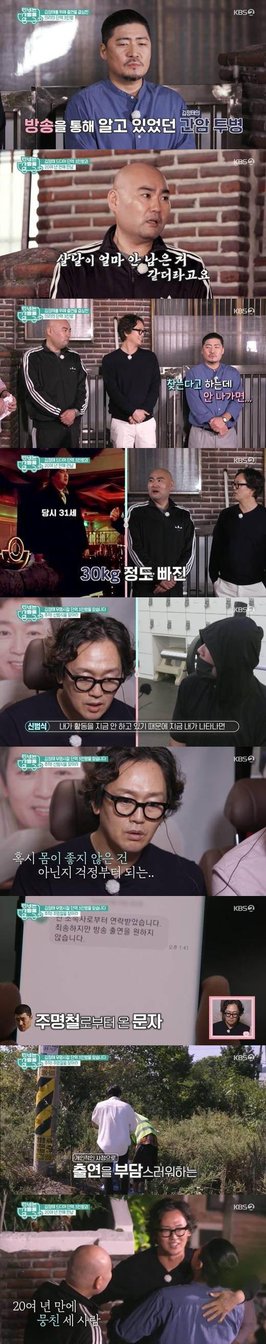 28일 오후 방송된 KBS 2TV 예능 프로그램 'TV는 사랑을 싣고'에서는 무명 시절 형제처럼 지냈던 동료 배우 주명철, 신범식을 찾아 나선 김정태의 이야기가 그려졌다.