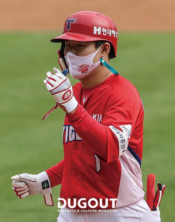 10경기 후반까지 연속안타를 치고 있을 때는 의식도 안 하고 별로 신경도 안 썼어요. 그런데 21경기 연속안타를 치고 난 다음에 22경기까지 연속안타를 치면 팀 내 최다 연속안타 기록 타이라는 이야기를 들어서 저도 모르게 경기 때 너무 의식했어요. 기록을 의식하면 깨진다고 들었는데 제가 욕심을 내고 서두르다 보니까 아쉽게 끝나버렸어요. (주변에서 위로를 해줬나요?) 기록에 도전할 때 이현곤 코치님이랑 (김)선빈이 형이 연속안타에 관해서 이야기를 많이 해주셨었어요. 경기마다 몇 경기 연속 안타라고 언급도 해주시고. 타이기록 도전에 실패하고 나서 두 분이 신기하게 똑같은 말씀을 해주셔서 기억나요. 기록 도전에 실패한 때가 정규시즌이 32경기 남은 상황이었는데 그래서 앞으로 32경기 연속안타를 칠 기회가 있다고 말씀해주셨어요. 그 말을 듣고 다음 경기부턴 후련하게 타석에 섰어요. 5강에 들어가려고 경기를 잘하다 보면 기록을 세울 수 있겠다고 생각했어요.