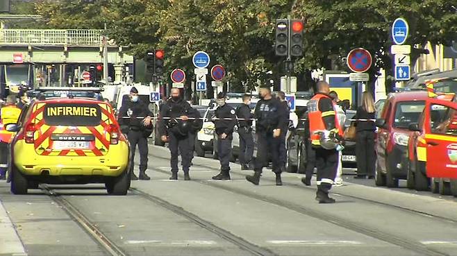 어제 프랑스 남부 해변 도시 니스의 노트르담성당 안에서 한 사람이 흉기를 휘둘러 성당 관리인을 포함해 3명이 숨졌습니다.