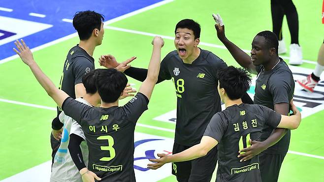 전광인의 입대, 문성민의 무릎 수술로 현대캐피탈 한쪽 날개가 정상 작동하지 않는 상황에서 오른쪽 날개 다우디가 승리에 앞장섰습니다.