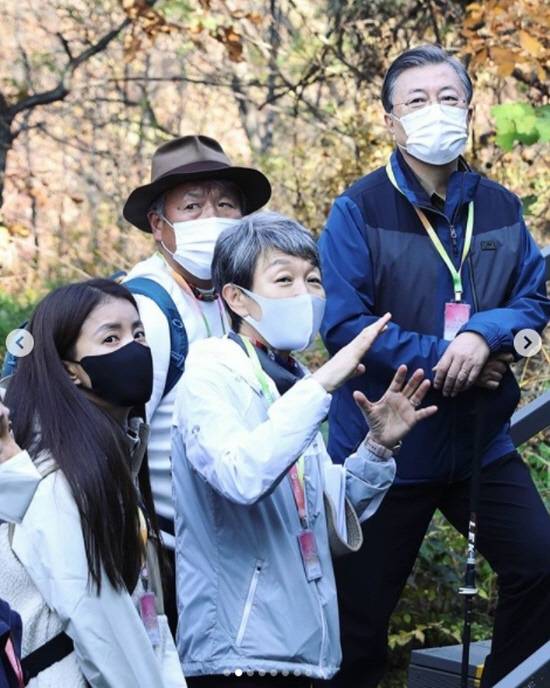 배우 이시영이 문재인 대통령과 북악산에 올랐다.