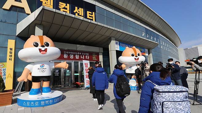 체육회는 선수·지도자의 음성 판정지를 확인하고 문진표 응답지를 받은 뒤 발열 등 코로나19 증상 검사를 하고 선수들을 선수촌 안으로 들여보냈습니다.