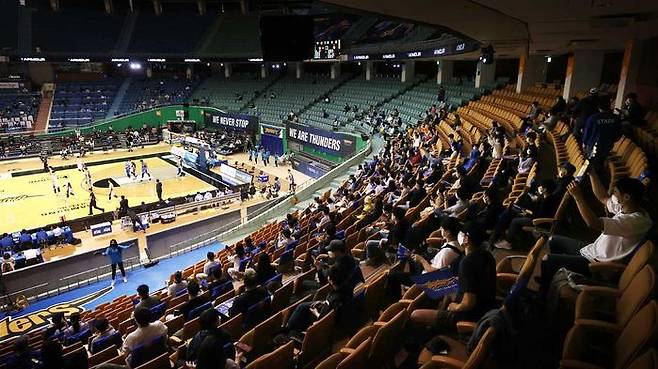 지난달 9일 무관중으로 개막한 프로농구는 지난달 17일부터 각 경기장의 20% 중반 규모로 관람석을 운영해왔습니다.
