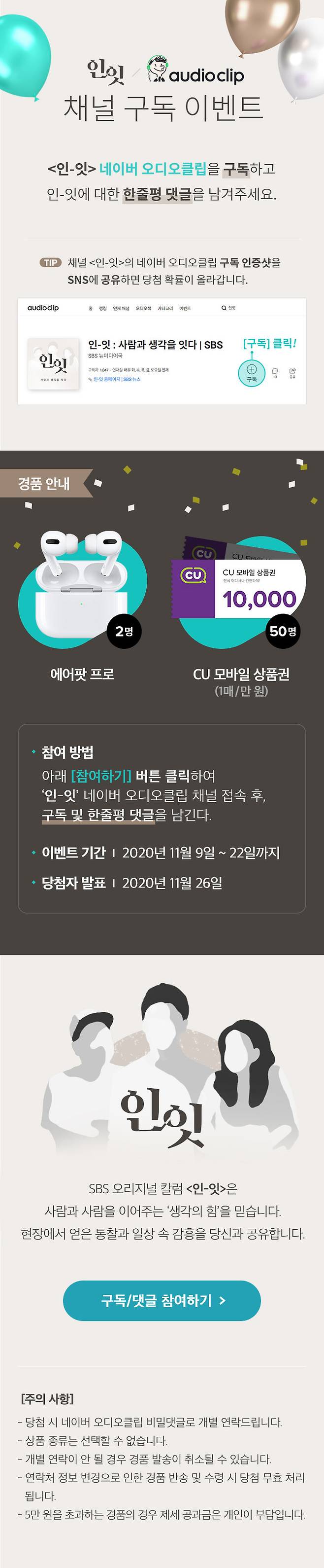 인-잇 오디오클립 구독/댓글 이벤트 참여하고 선물 받아가세요!