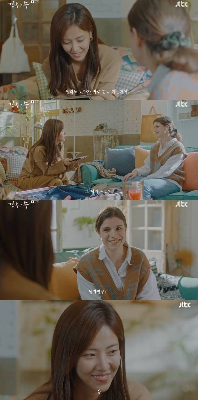 권유라는 "응"이라며 조금의 망설임도 없이 사진 속 남자를 자신의 남자친구라고 칭했다. 이후 비쳐진 사진 속 남자는 이수였다. 권유라와 이수가 정확히 무슨 사이인지 귀추가 주목된다. (사진=JTBC '경우의 수' 캡처)