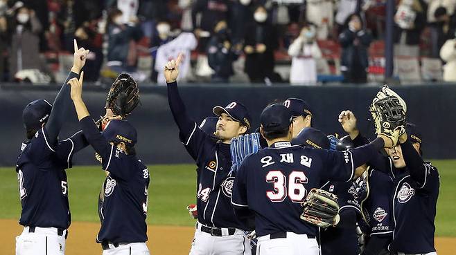 두 번째 FA를 앞둔 '맏형' 김재호는 "의식하고 있지만, 헤어지고 싶지 않아요. '이렇게 좋은 멤버로 인생에서 앞으로 얼마나 더 야구를 할 수 있을까' 하는 생각도 있습니다. 이제 고민이 되는 시기이긴 해요. 일단 포스트시즌에서 좋은 추억을 길게 가지고 가려고 합니다"라고 말했습니다.