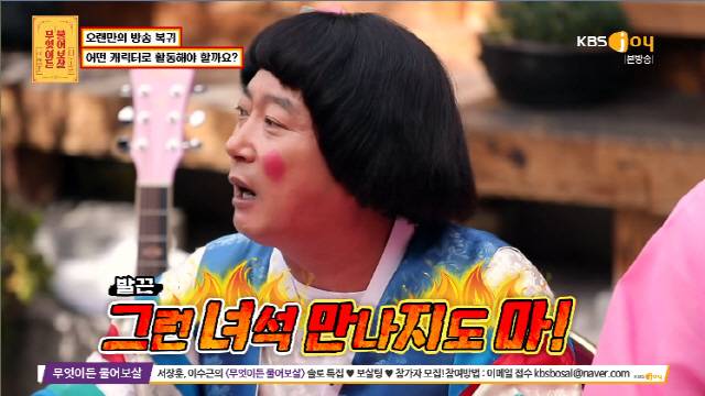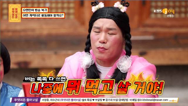 이어 "요즘은 억지로 뭔가 하려고 하면 역효과가 난다. 새로운 장르에 도전하다보면 잠재되어 있던 매력이 나올 거다. 자연스럽게 캐릭터화가 될 것 같다"며 "우리가 뭐가 좋다고 이렇게 하고 있겠냐. 여러 가지에 도전을 해봐라"라고 조언했다.