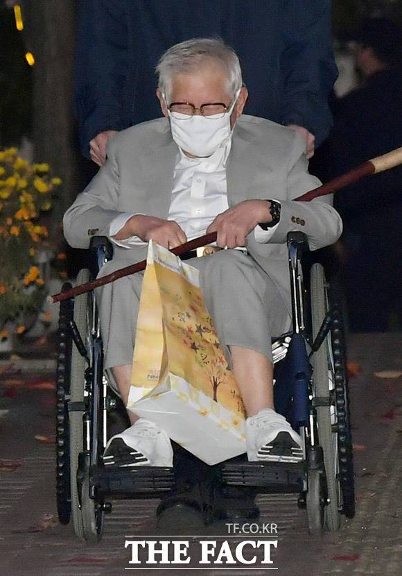 [더팩트ㅣ수원=이덕인 기자] 감염병예방법 위반 등의 혐의로 구속기소 된 이만희 신천지예수교 증거장막성전(신천지) 총회장이 12일 오후 경기 수원시 팔달구 수원구치소를 나서고 있다.