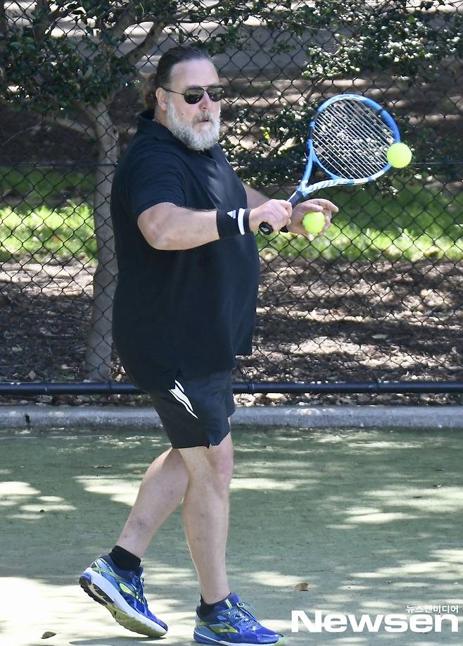 러셀 크로우, 몰라보게 살찐 근황..26살 어린 여친과 테니스[파파라치컷]