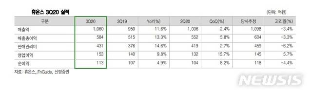 신영證 "휴온스, 자회사 호실적에 분기 사상 최대 실적"
