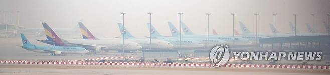 사진은 15일 인천국제공항 계류장에 세워진 대한항공과 아시아나항공 여객기 모습.