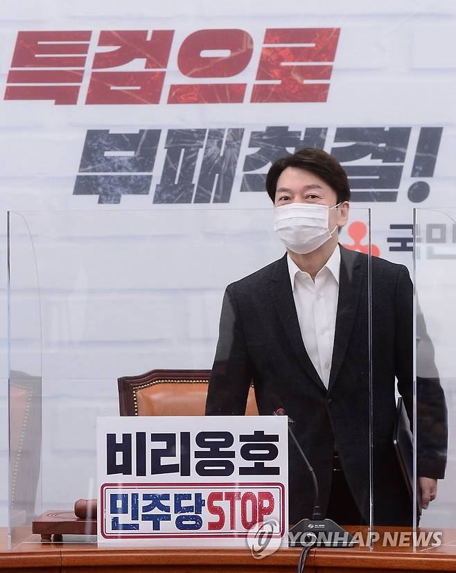 (서울=연합뉴스) 안정원 기자 = 국민의당 안철수 대표가 16일 오전 서울 여의도 국회에서 열린 최고위원회의에 참석하고 있다. 2020.11.16