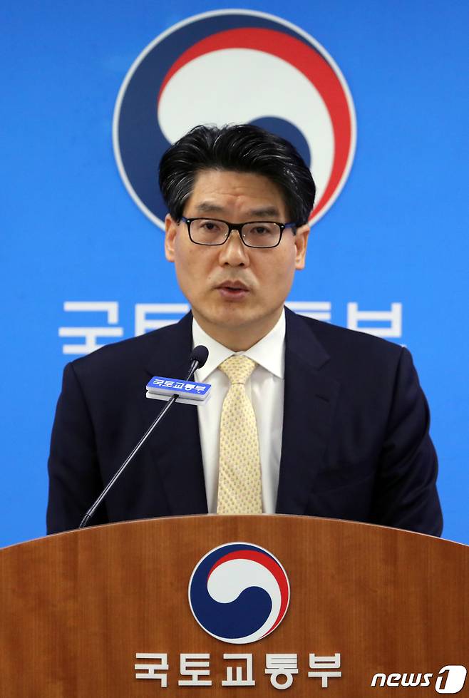 (세종=뉴스1) 장수영 기자 = 김상도 국토교통부 항공정책실장이 16일 정부세종청사 국토부에서 대한항공의 아시아나항공 인수합병과 관련된 내용을 설명하고 있다. 2020.11.16/뉴스1