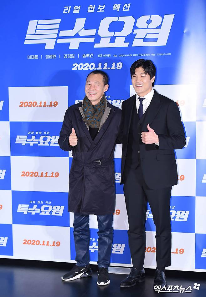 [엑스포츠뉴스 윤다희 기자] 16일 오후 서울 자양동 롯데시네마 건대입구에서 열린 영화 ‘특수요원’ 언론시사회에 참석한 배우 김강일, 이재윤이 포토타임을 갖고 있다.