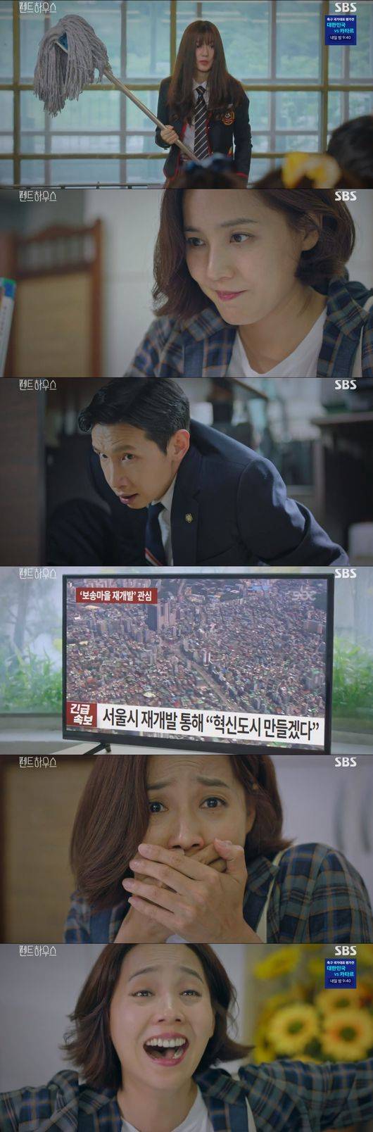 16일에 방송된 SBS월화드라마 '펜트하우스'에서는 오윤희(유진)이 죽은 민설아(조수민)의 집을 샀고 재개발 되면서 돈방석에 앉게 됐다.