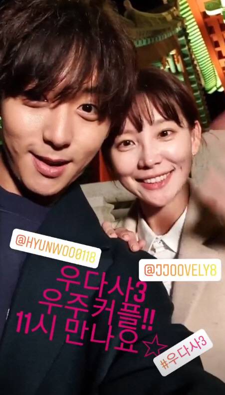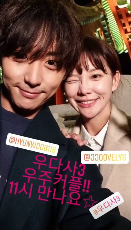 현우와 지주연은 18일 각각 자신의 인스타그램 스토리에 "'우다사3' 우주커플!! 11시 만나요"라는 글과 함께 찍은 영상을 게재했다.