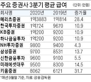3분기 증권사 평균 급여가 1억원을 돌파한 것은 이번이 처음이다.