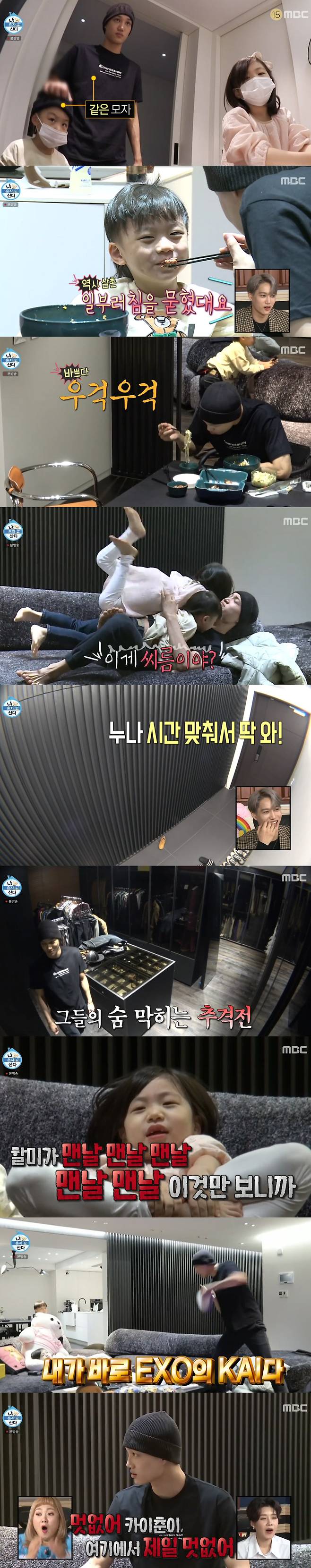 그때 카이의 집에 조카들이 방문했다. 익숙하게 조카를 챙기는 카이. 그때 조카들은 밥상을 뒤로한 채 온 집안을 헤집으며 숨바꼭질을 하는 등 넘치는 에너지를 발산했다. 결국 카이는 누나에게 전화를 걸어 "두 시간이라고 했지? 시간 맞춰서 꼭 와"라고 당부해 웃음을 안겼다.