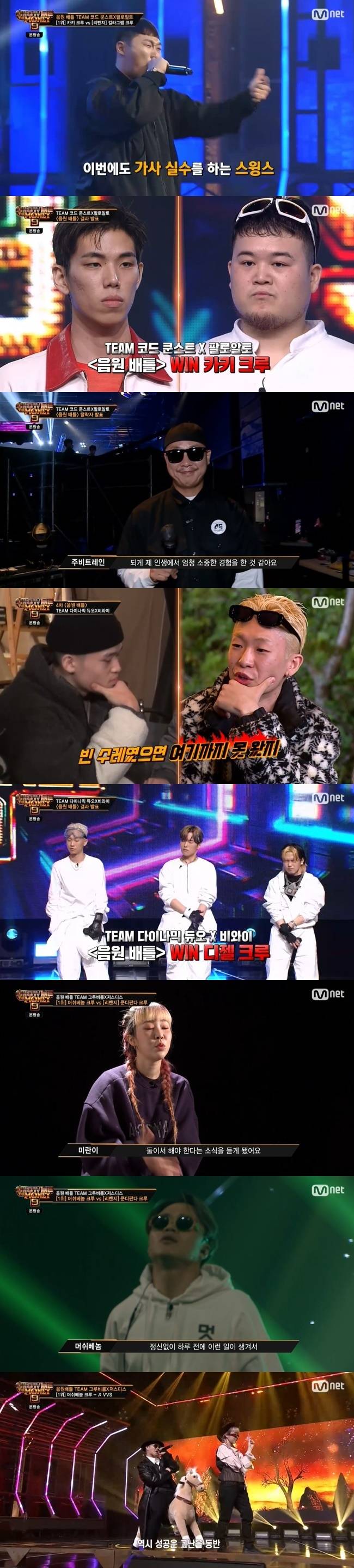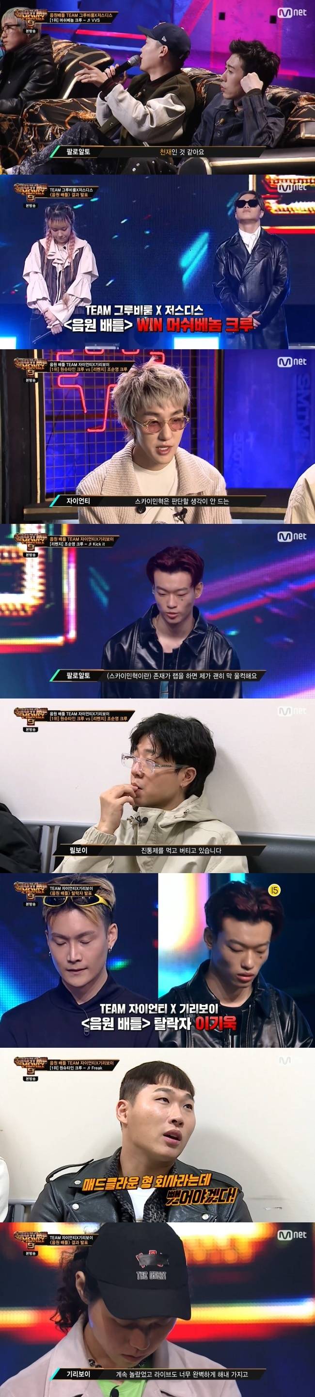 원슈타인 크루는 3차에 이어 또 다시 승리를 거뒀다. 패한 조순영 크루에서는 조순영, 이기욱이 탈락했다. (사진=Mnet '쇼미더머니9' 방송 캡처)