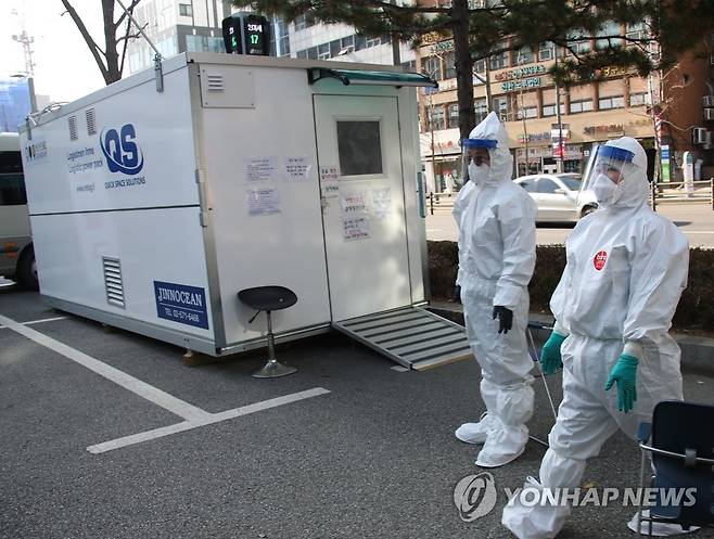 (서울=연합뉴스) 김승두 기자 = 휴일인 21일 서울 강남구의 신종 코로나바이러스 감염증(코로나19) 선별진료소에서 관계자들이 검사대기 시민들을 기다리고 있다. 2020.11.21