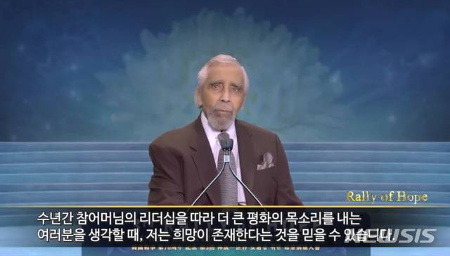 [서울=뉴시스]최진석 기자 = 한국전쟁 참전용사인 찰스 랭글 미국 전 하원의원이 22일 세계평화통일가정연합(이하 가정연합)과 천주평화연합(이하 UPF)의 공동주최로 6·25전쟁 70주년 맞아 ‘은혜를 잊지 않는 대한민국, 신통일한국 신통일세계로’라는 주제로 비대면 온라인 방식으로 열린 ‘제3회 신(神)통일세계 안착을 위한 100만 온라인 희망전진대회’에 참석해 축사하고 있다. (사진=세계평화통일가정연합 제공) 2020.11.22.