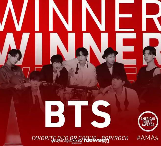 방탄소년단은 "아미들과 '아메리칸 뮤직 어워드' 측에 감사하다"며 "큰 영광"이라고 수상 소감을 밝혔다.