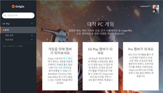 | [EA의 디지털 판매 플랫폼 – Origin] | ||