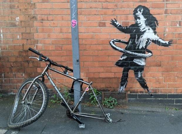 또 도난..뱅크시 작품 '훌라후프 소녀'의 자전거 사라졌다