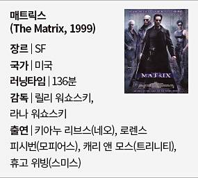 새로운 밀레니엄을 앞두고 기대와 두려움으로 들썩이던 1999년에 개봉한 ‘매트릭스’는 공상과학(SF) 영화를 한 단계 업그레이드시켰다고 봐도 좋을 것 같다. 미래에 대한 불안과 인간에게 내재한 살육의 본능을 오락으로 해소해내면서도 세상과 개인의 관계를 깊이 돌아보게 한다. 춤추듯 공중부양해서 발차기로 상대를 제압하는 트리니티의 우아한 공격, 총알을 피해 긴 코트를 입은 네오가 반쯤 누운 상태로 360도 회전하는 슬로모션 등 현란한 화면도 눈을 즐겁게 한다. 2021년 겨울에 4편이 개봉될 예정이라고 한다.