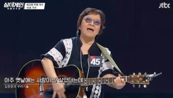 [엔터미디어=정덕현] JTBC <싱어게인>에서 45호 가수 윤설하는 사실 오디션 프로그램에 나오기에는 어쩐지 어울리지 않는 나이의 소유자였다. '최고령 무명가수'로 소개된 그는 자신이 '김창완과 꾸러기들'에서 같이 활동했던 가수라는 걸 밝혔다. 아마도 중년의 시청자들이라면 당시 통기타를 둘러맨 청년들이 '아주 옛날에는 사람이 안 살았다는데'를 부르던 모습을 금세 떠올렸을 게다.