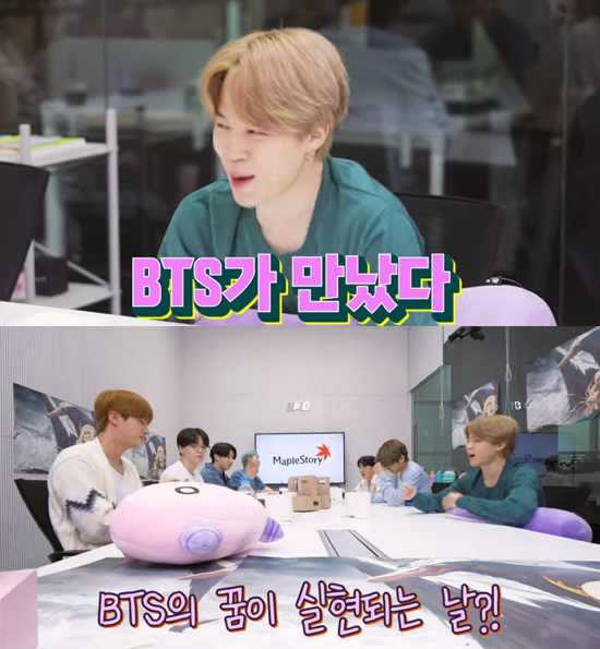 영상에는 메이플스토리와 협업을 진행하는 방탄소년단의 멤버들의 모습이 담겼다.