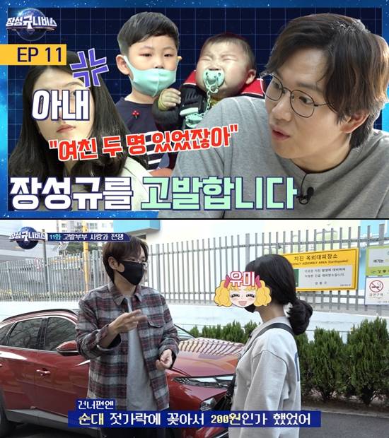 이후 장성규의 아내는 "전 여자친구 어머니를 보고 숨었다", "나한테 계속 전화해서 밥 사달라고 했다", "재수하면서 힘들다면서 여자친구 사귀었잖아. 내가 첫사랑 맞아?" "내가 여자친구 두 명을 알잖아"라고 장성규에 대한 폭로를 하며 입담을 과시했다. 이에 장성규는 "두 명만 아는구나"라고 반격해 보는 이들을 폭소케 했다.