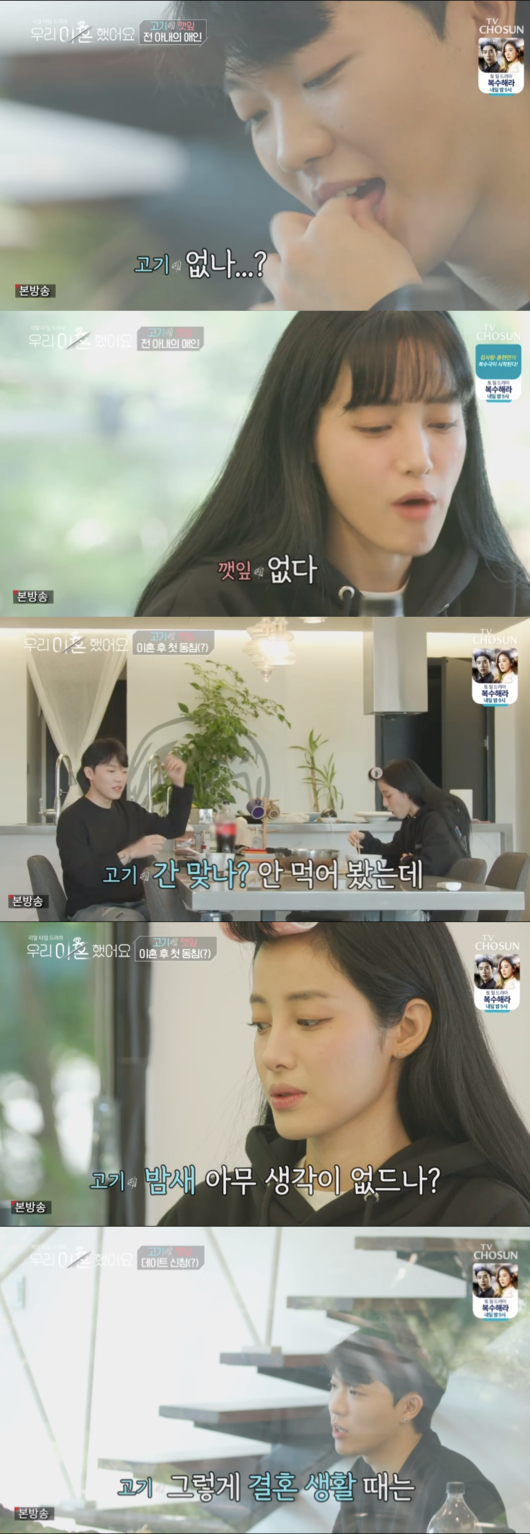 유깻잎은 최고기가 만든 음식을 먹으며 "맛있네"라고 감탄했다.