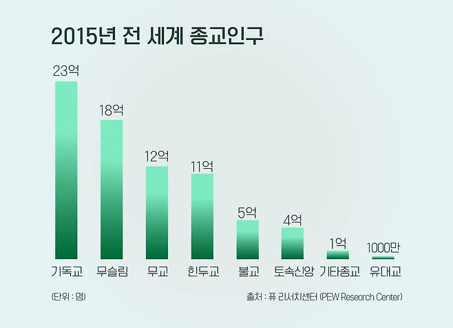 이슬람은 세계에서 두 번째로 신도가 많은 종교입니다. 미국 통계조사기관 '퓨리서치센터(PEW Research Center)'에 따르면 2015년 기준 전 세계 무슬림 인구는 18억명으로 집계됐습니다. 가장 규모가 큰 기독교(22억명)과 신도 수 차이는 5억명 정도입니다. 신도 수가 늘어나는 속도가 빨라, 2035년에는 이슬람 신자 수가 기독교를 초월할 거라는 전망도 있습니다.