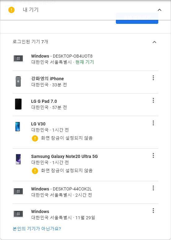 수상한 기기 찾기? 기기 이름부터 마지막 접속 시간까지 확인