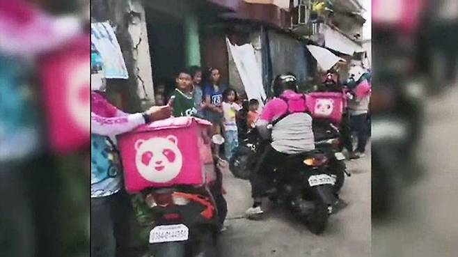 마을에 배달 오토바이 수십 대가 집결했는데요.