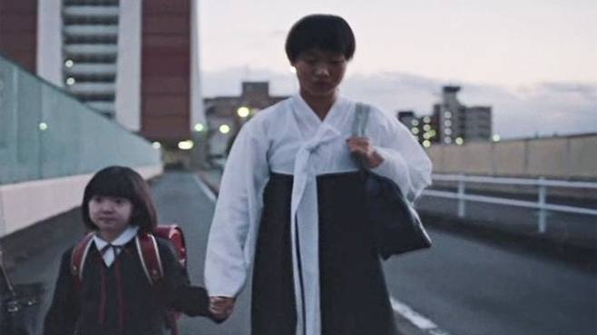 이 가운데 치마저고리를 입고 등장하는 학생은 실제로 일본에 거주하는 재일 조선인입니다.