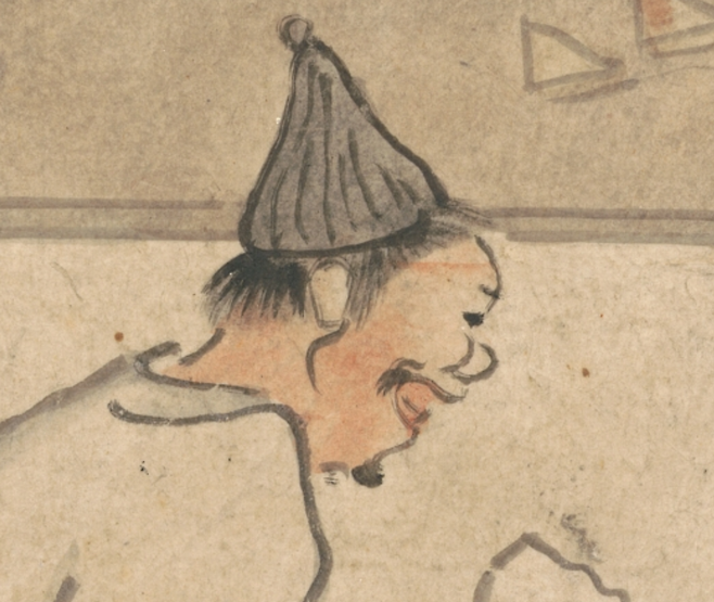사람들이 빙 둘러서서 뭔가를 올려다보고 있습니다. 장대 위에 거꾸로 매달린 건 다름 아닌 원숭이. 구경꾼이 몇 명인지 일일이 세어 보지는 않았습니다만, 저 정도면 원숭이 곡예의 인기가 꽤 대단했던 모양입니다. 조선 후기에는 이런 길거리 원숭이 공연이 꽤 성행했다고 하는데요. 원숭이가 재주 부리는 공연을 후희(猴戱), 원숭이 조련사를 농후자(弄猴者)라고 불렀답니다. 이번엔 조련사에게 시선을 옮겨봅니다.