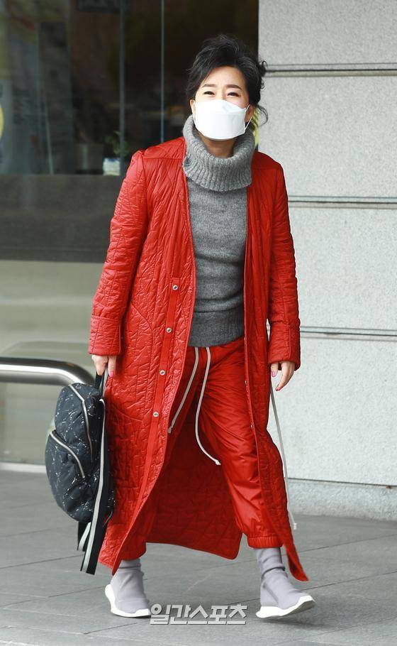 배우 오미희가 2일 오후 서울 여의도 KBS 별관에서 진행되는 방송일정 소하차 방송국으로 향하고 있다.